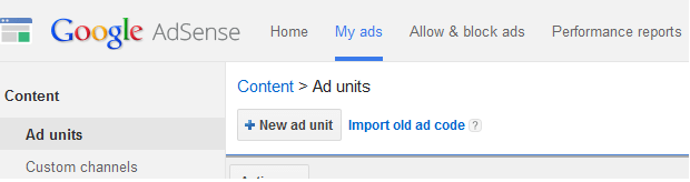 ==> Amongst the top menus, click on ‘My Ads‘ and click on ‘New AD Unit‘